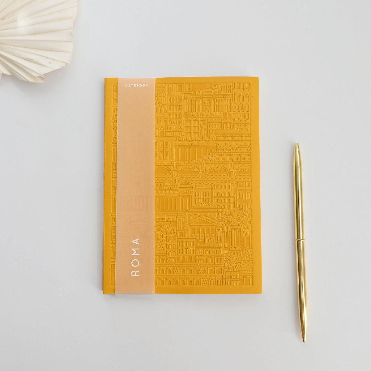 Erlebe die Schönheit Roms mit diesem sonnengelben B6-Notizbuch, das perfekt als Geschenk für Mitarbeitende und Geschäftskunden geeignet ist. Der handgepresste Einband mit römischen Sehenswürdigkeiten macht es zu einem einzigartigen Accessoire.